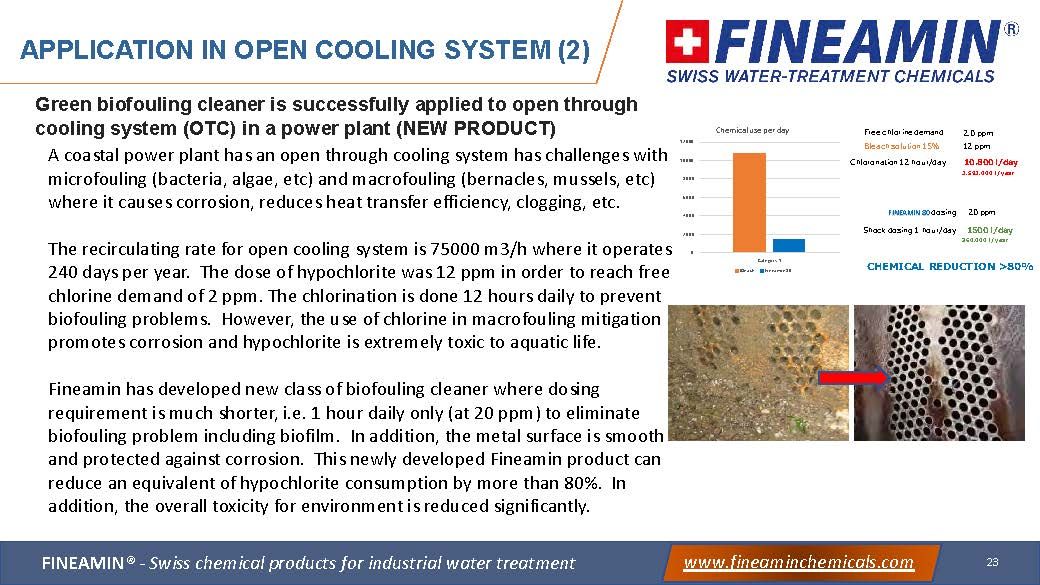 • Cut dosing time from 12 hours to 1 hour daily while reducing macro/microfouling and protecting metal surfaces.