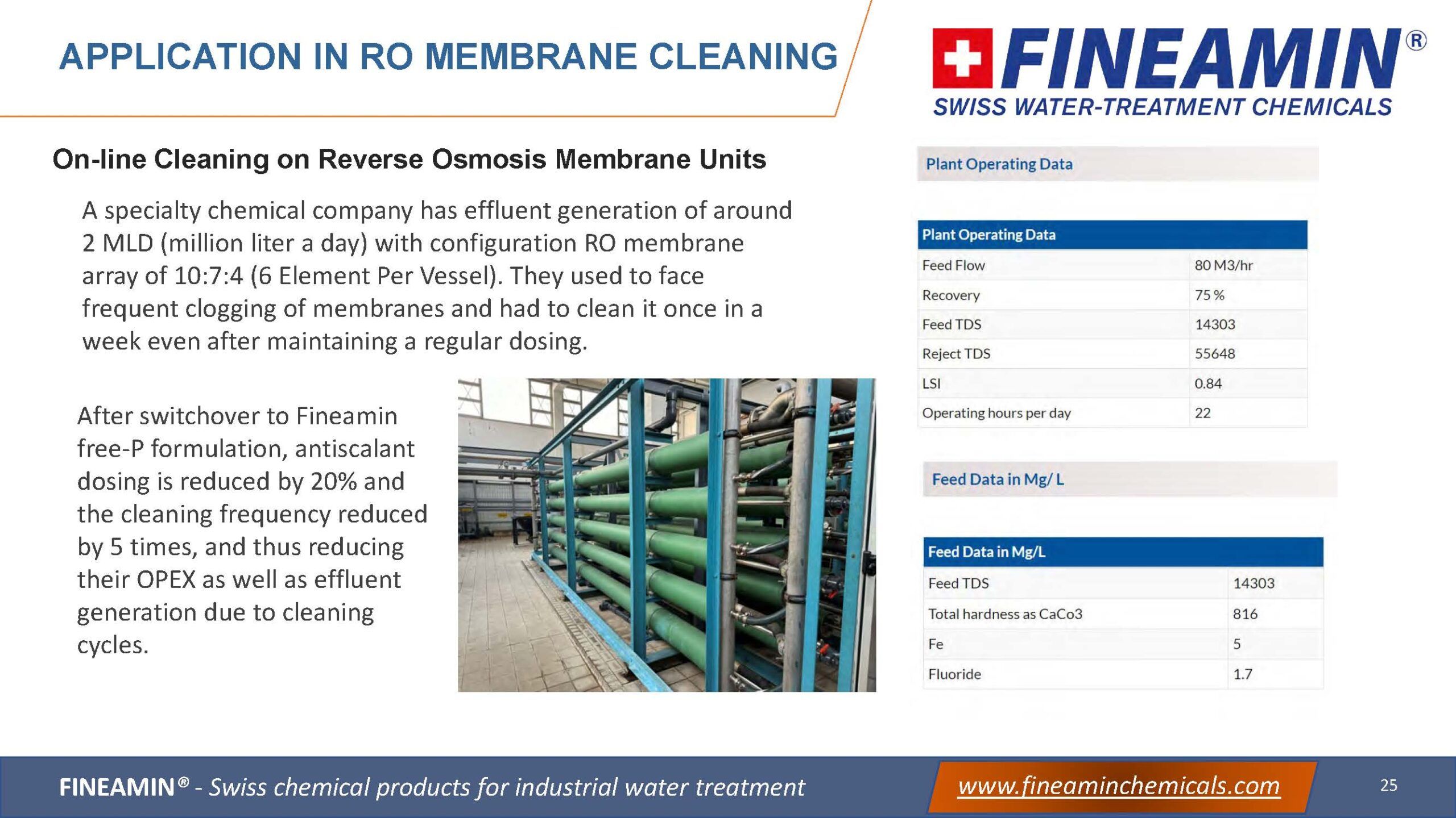 Fineamin’s free-P formulation optimizes reverse osmosis performance by: